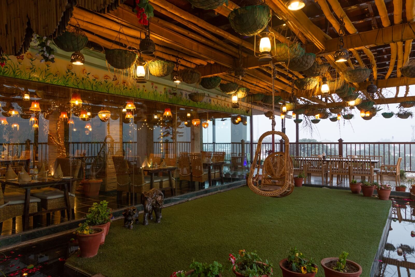 Dine in a culturally rich rooftop space with exceptional service and breathtaking views of the Ganges and mountains. Witness an illusion of an elephant sitting in nature, making your experience truly memorable.